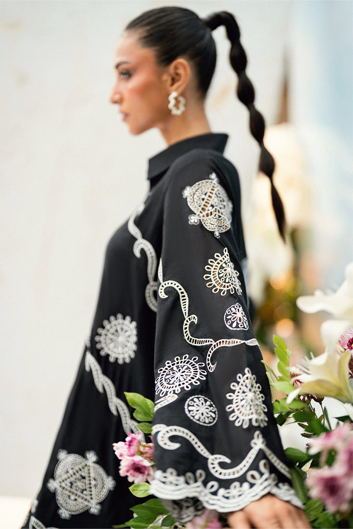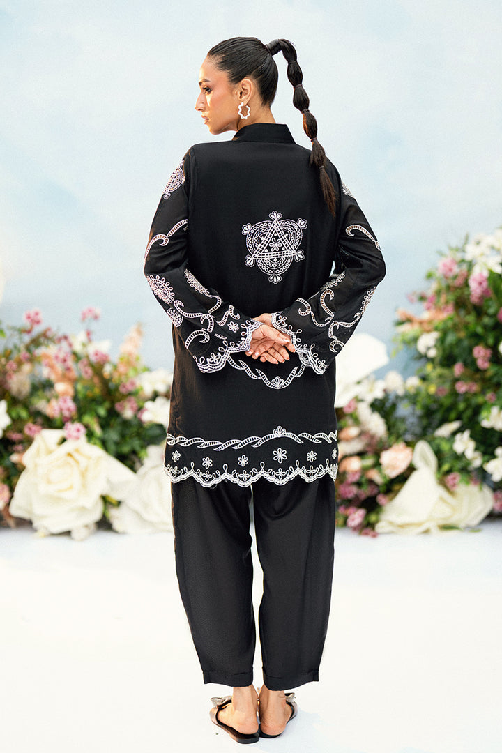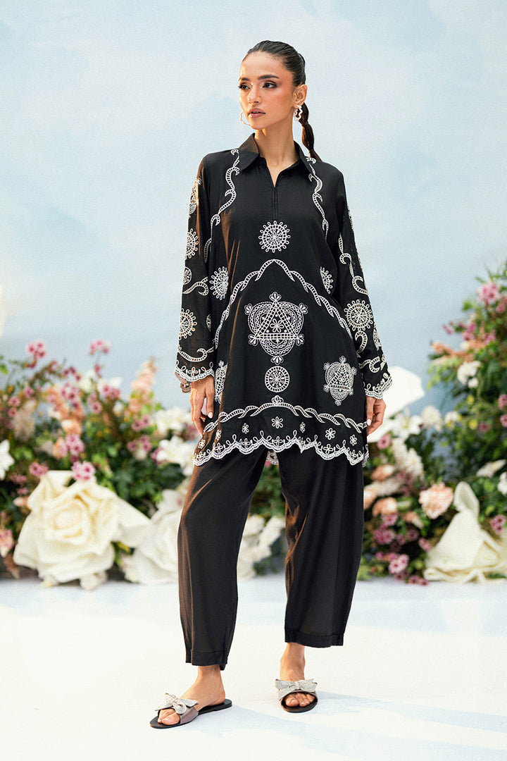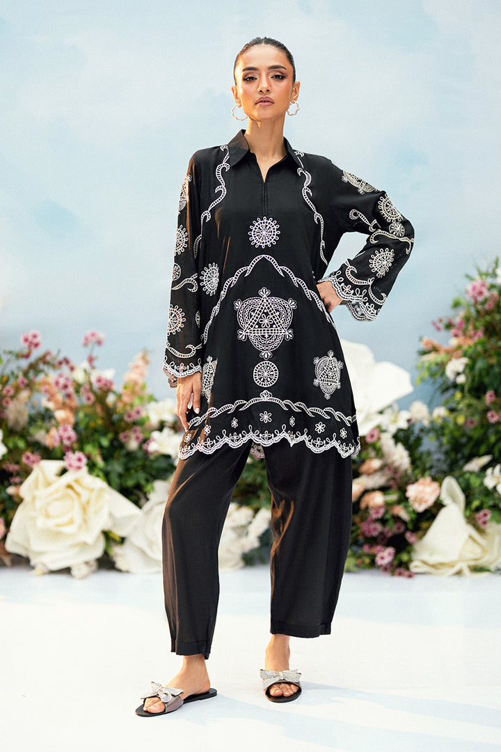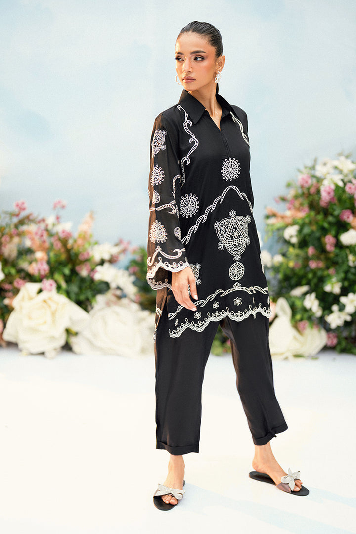 A digital cotton attire featuring refined embroidery on both the front and back of the shirt. Paired with tailored trousers, this ensemble offers a classic and versatile look.